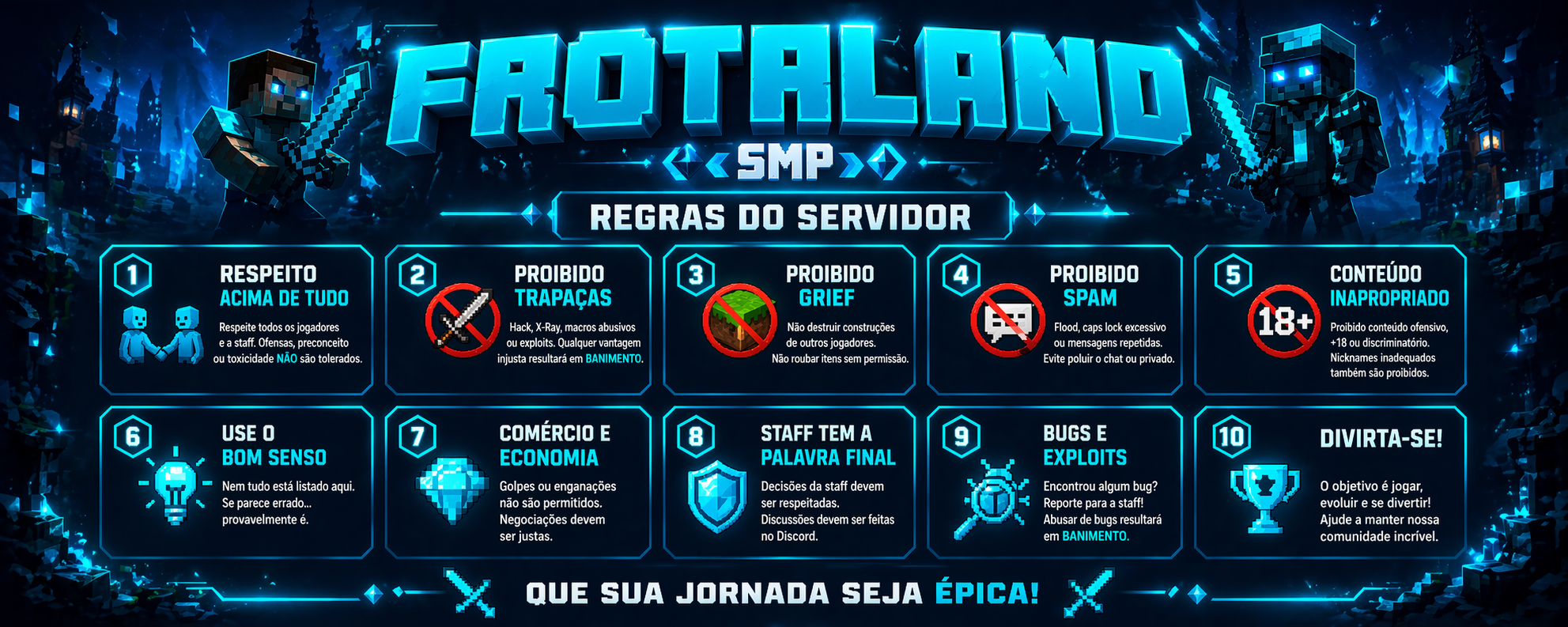 💎 Apoie o FrotaLand SMP adquirindo itens e benefícios exclusivos! Cada compra ajuda a manter o servidor online, com melhorias constantes, eventos e novidades.